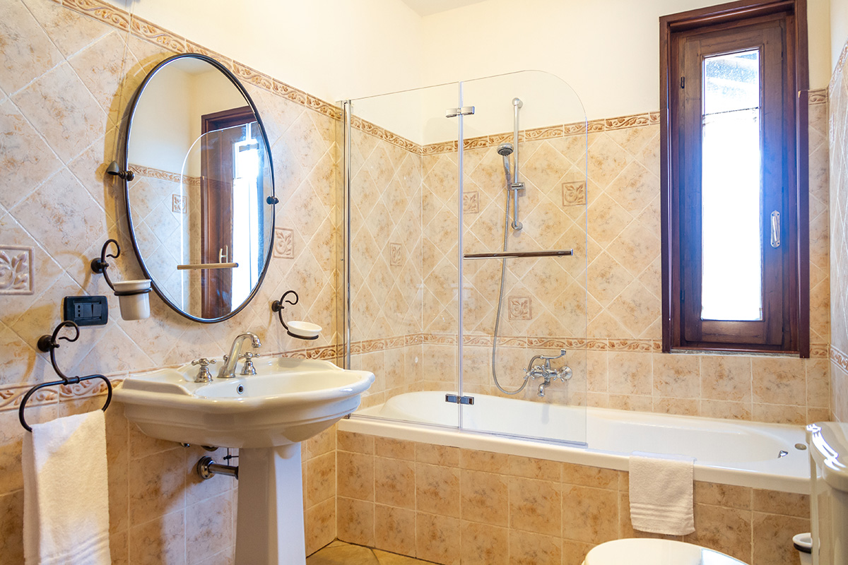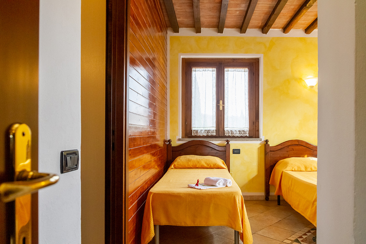 Appartamento trilocale al piano primo con camera da letto matrimoniale, camera con due letti singoli, bagno con vasca e spaziosa zona giorno.