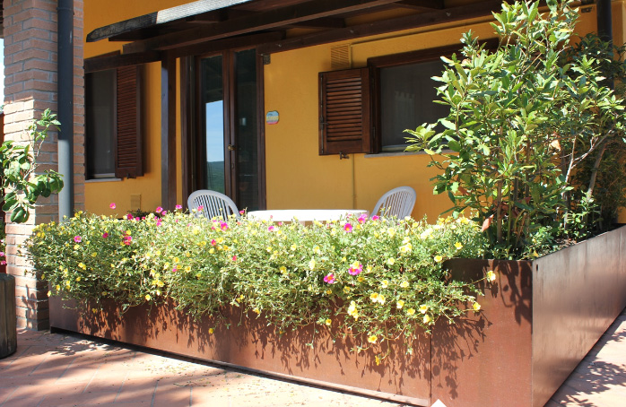 All’esterno uno spazio attrezzato con tavolo, sedie e barbecue.