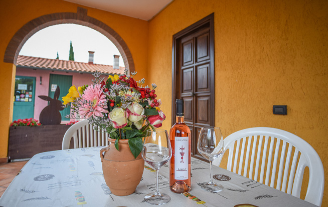 All’esterno uno spazio attrezzato privato con tavolo, sedie e barbecue.